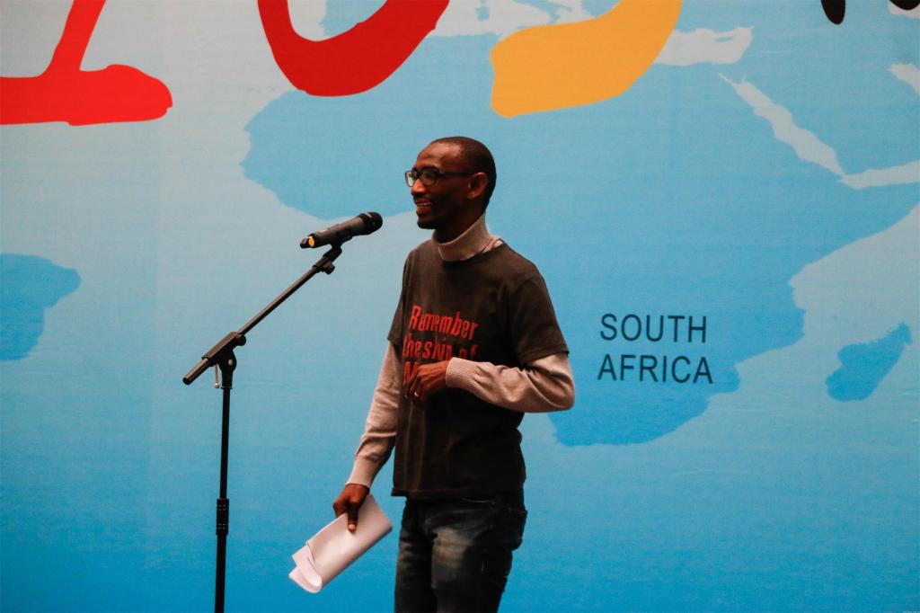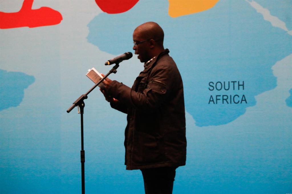 南非著名作家尼克·姆隆戈朗诵小说《看不见的地标》片段,惊心动魄的故事和饱满深情的朗诵,感染了现场的观众。