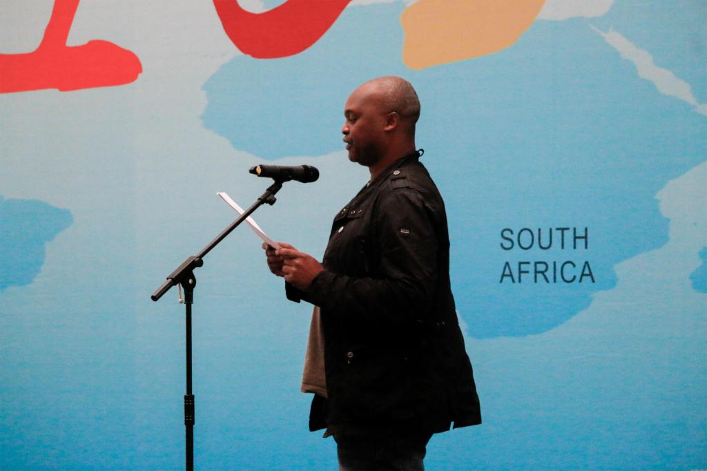 南非著名作家尼克·姆隆戈朗诵小说《看不见的地标》片段,惊心动魄的故事和饱满深情的朗诵,感染了现场的观众。